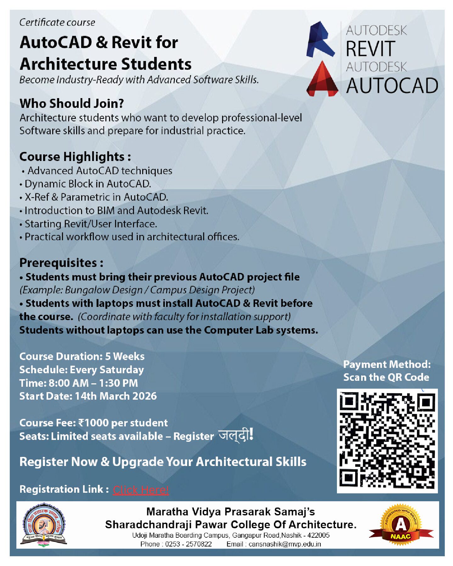 Certificate course on AutoCAD and Revit Architecture